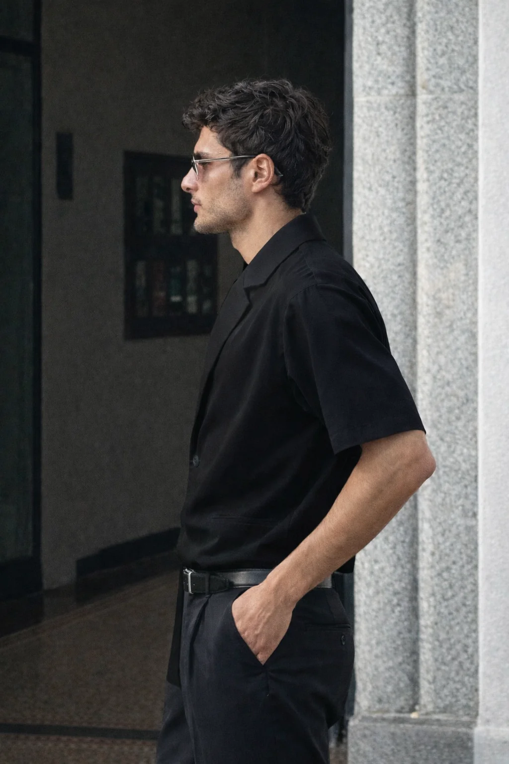 Experience effortless sophistication with our Blazer Vibe Slanted Placket Short Sleeve Shirt. Made for the modern man, this premium shirt features a slanted placket and short sleeves, perfect for both formal and casual occasions. Elevate your style with this must-have piece from our exclusive collection.